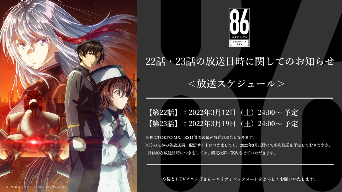 【悲報】「86」さん、最終回の放送が3月に延期になってしまう…
