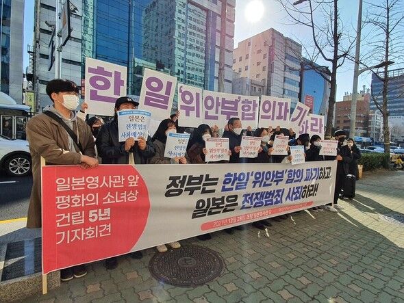 韓日両国が2015年12月28日に日本軍「慰安婦」合意(12・28合意)を締結してから6年目になる今月28日、釜山(プサン)の市民団体が政府に同合意の破棄を求めた。