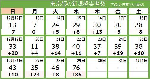 【新型コロナ】東京都で新たに76人感染 70人を上回るのは10月13日以来 12月29日