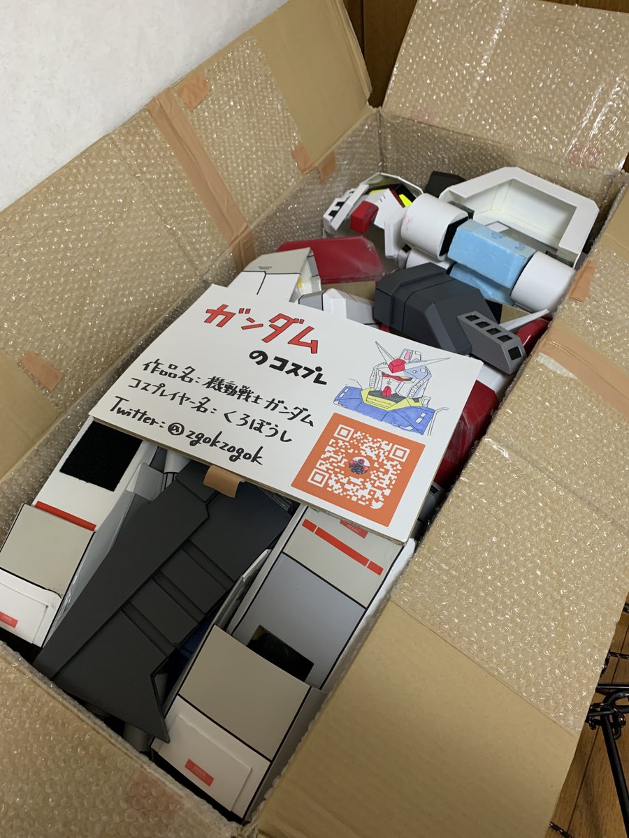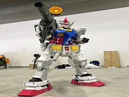 とはいえ、ここまで立派なモビルスーツを着用するには、なかなかの苦労もある。「パーツごとに分けて、段ボールに入れて電車で来ました。でも1人では着られないので、手伝ってもらい20分くらいで着替えました」。