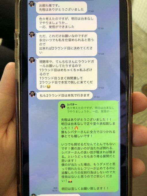 この試合をめぐってはツイッターで、シバターと久保のやり取りとされるLINEのスクリーンショット画像が拡散。それによると、第1ラウンド(R)は時間を潰し、第2Rで「本気で倒しに来て」などとするシバターの提案を、久保が受け入れていた。だが、実際は第1R途中からシバターが攻勢に転じ、勝利していた。