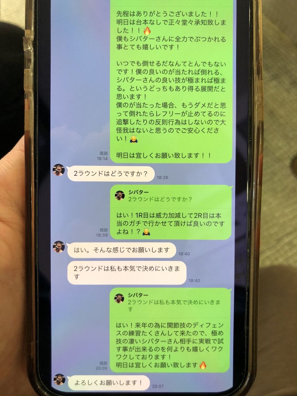 この試合をめぐってはツイッターで、シバターと久保のやり取りとされるLINEのスクリーンショット画像が拡散。それによると、第1ラウンド(R)は時間を潰し、第2Rで「本気で倒しに来て」などとするシバターの提案を、久保が受け入れていた。だが、実際は第1R途中からシバターが攻勢に転じ、勝利していた。