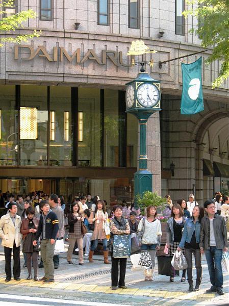 神戸市中央区明石町の大丸神戸店では、混雑時に入店制限できるよう、入り口を1カ所に限定し、道路を通行止めにして待機客のスペースを確保。開店前には昨年の10倍となる1500人が列をつくった。コロナ禍前は5千人だったが、2年ぶりのにぎわいを感じさせた。行列は夕方まで続いた