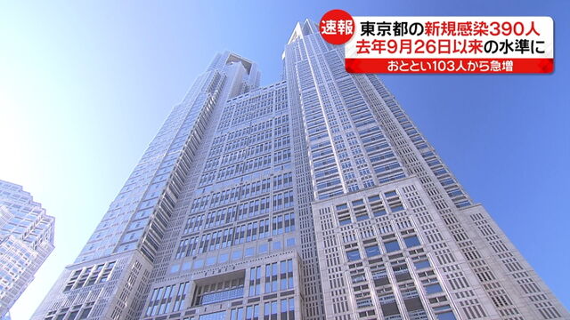 東京都は5日、都内で新たに390人が新型コロナウイルスに感染していることを確認したと発表しました。