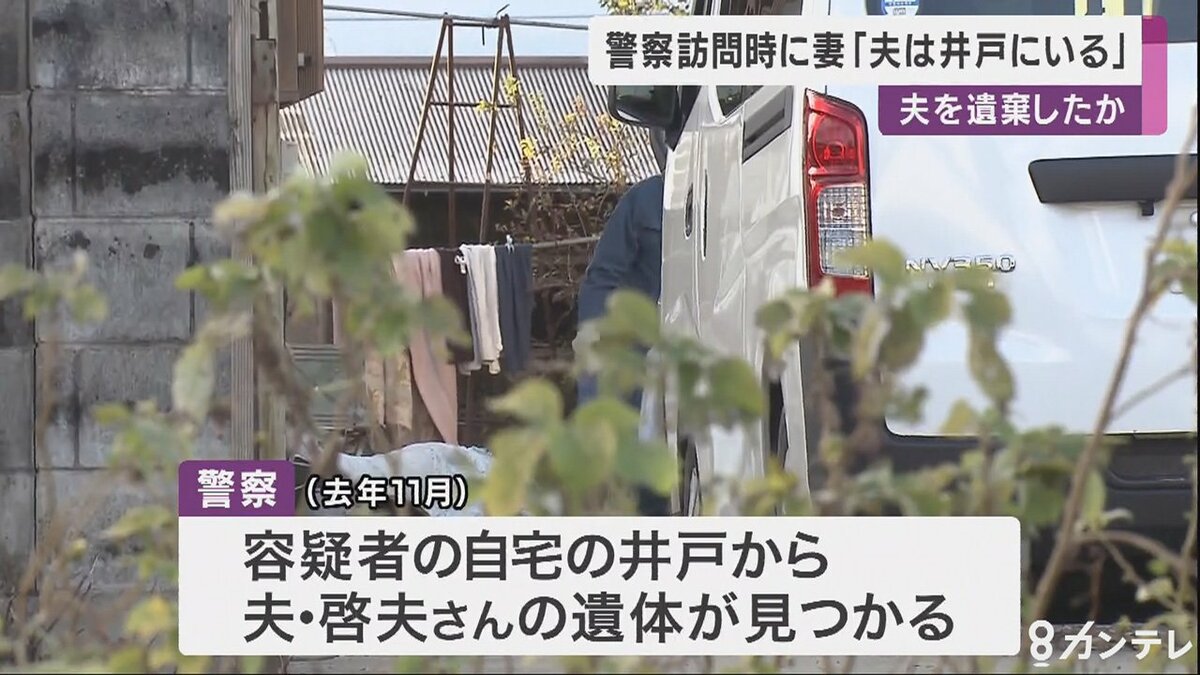 その後の捜査で民子容疑者が、啓夫さんの遺体を自宅の井戸に遺棄した疑いが強まったとして警察は4日、民子容疑者を死体遺棄の疑いで再逮捕しました。