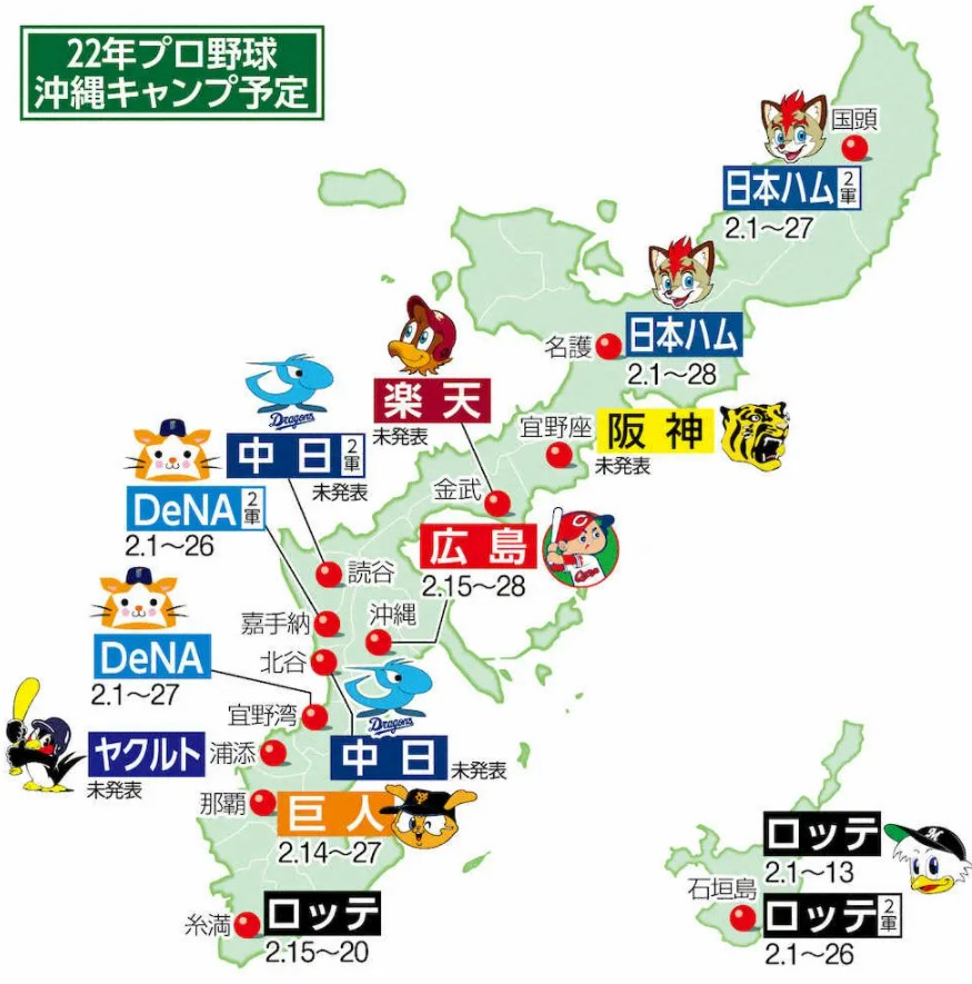 ▽昨春の無観客キャンプ 1月14日にロッテが石垣市と協議の末、無観客での実施を発表。15日には宮崎県をキャンプ地とする6球団、19日には全12球団のキャンプ地で無観客での実施が決まった。2月中に沖縄で開催予定だったオープン戦は全て練習試合に変更され、オープン戦は1週間遅れで開幕。昨年初の有観客試合として上限3000人で2月27日に高知・春野で開催された西武―ロッテの練習試合には、2059人のファンが詰めかけた。