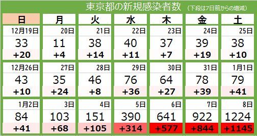 1週間平均の新規感染者数は502.1人で、8日時点で前の週に比べて、835.4%と8倍を超えた。