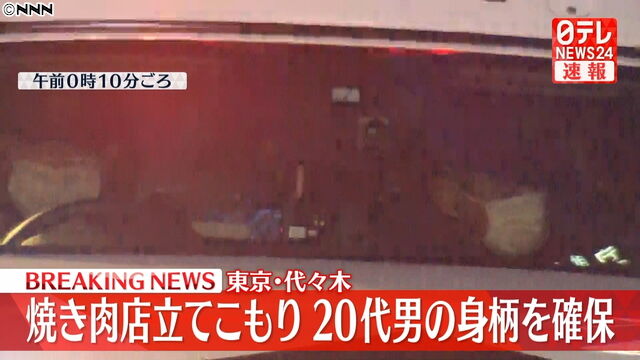東京・渋谷区代々木の焼き肉店で刃物のようなものを持った男が店長を人質に立てこもっていた事件で、警視庁は20代の男を確保。