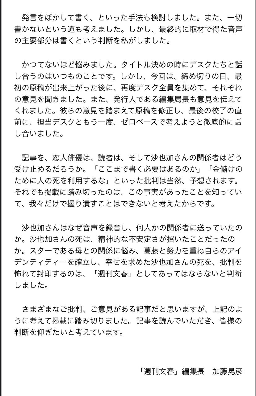 「週刊文春」編集長、この記事を掲載した理由をニュースレターで配信