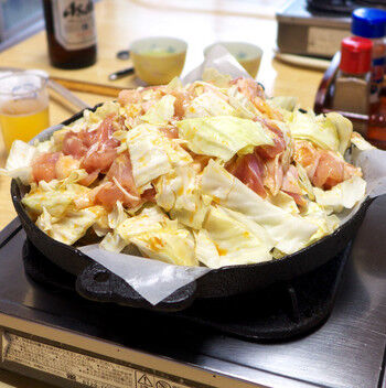 鶏肉とキャベツなどに特製のタレを絡め、鉄板やジンギスカン鍋などで焼ながら食べる「鶏ちゃん」。