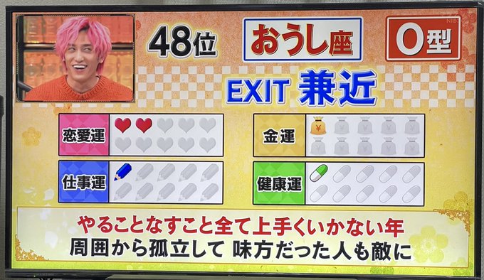 兼近大樹「DX」運勢ビリ48位「牡牛座O型の皆様」で団結 コメ千件超「反占い派w」