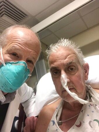 豚の心臓を移植する手術を前にしたバートリー・グリフィス医師(左)と、患者のデービッド・ベネットさん(米メリーランド大提供)(EPA時事)