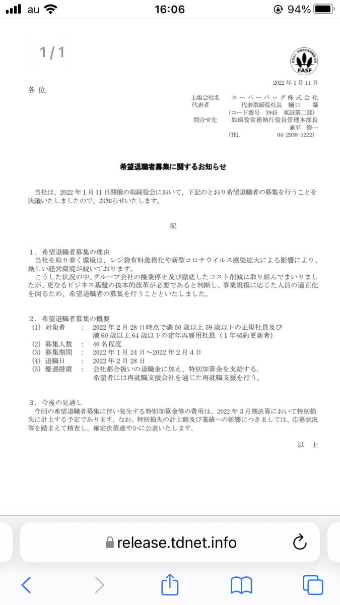 レジ袋屋さんが希望退職募集とか。売上激減してるけど損益はそこまで大赤字ではなくCFも出てるわ。持ちこたえてる。しかしなあ。政策一つで企業傾くし、言うてる本人は何とも思ってないのがなあ。