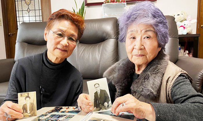 ▲ 日本の佐渡鉱山の強制動員被害者、故イム・テホさんの娘であるイム・ガンランさん(右)、・イム・ギョンスクさんが去る17日、日本の川崎市にある父親が住んでいた家で父親の写真を持っている。