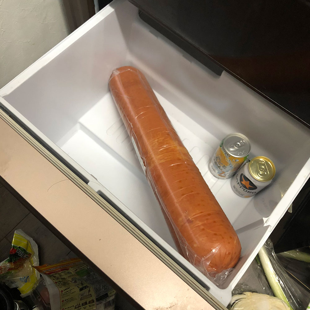 「精神的にしんどい」とかツイートしてたら、夫がバットみたいなハムを抱えて帰ってきたので爆笑してる。 pic.twitter.com/6eVuj3DOzg