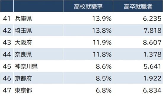 都道府県「卒業後に就職する高校生の割合」ランキング
