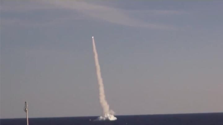 ロシア太平洋艦隊の最新ディーゼル電気潜水艦が日本海から陸上の目標に向けて発射した巡航ミサイル「カリブル」 ロシア国防省フェイスブックページから