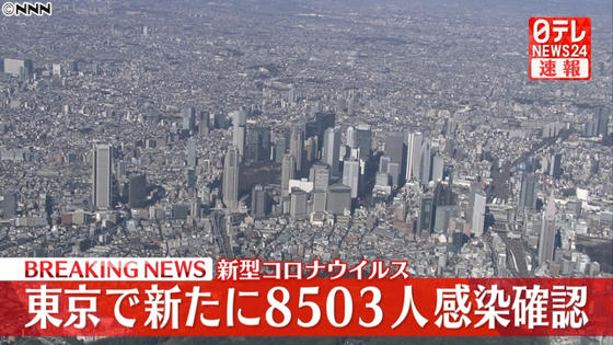 24日、東京都が確認した新型コロナウイルスの新たな感染者は8503人だった。