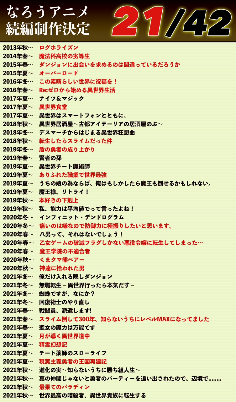 【朗報】「なろうアニメ」さん←50%の確率で続編が決定する勝ち確の金脈だったことが判明してしまうwww