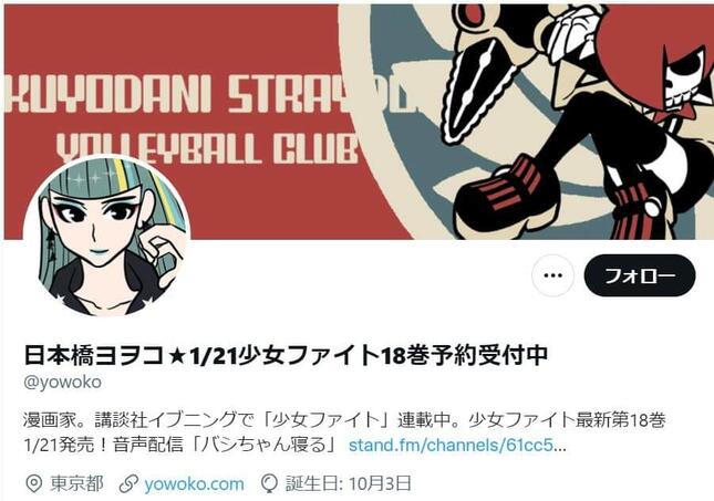 日本橋ヨヲコさんは連載中の人気漫画「少女ファイト」などで知られている。