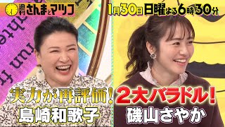 あす1月30日の放送では緊急企画として、バラドルとして長年活躍する島崎和歌子と磯山さやかを徹底解剖することに。島崎は芸能生活30周年、磯山は20周年というメモリアルイヤーを迎えていたが、テレビ業界からは3年近く何もしてもらえていない状態だという…。