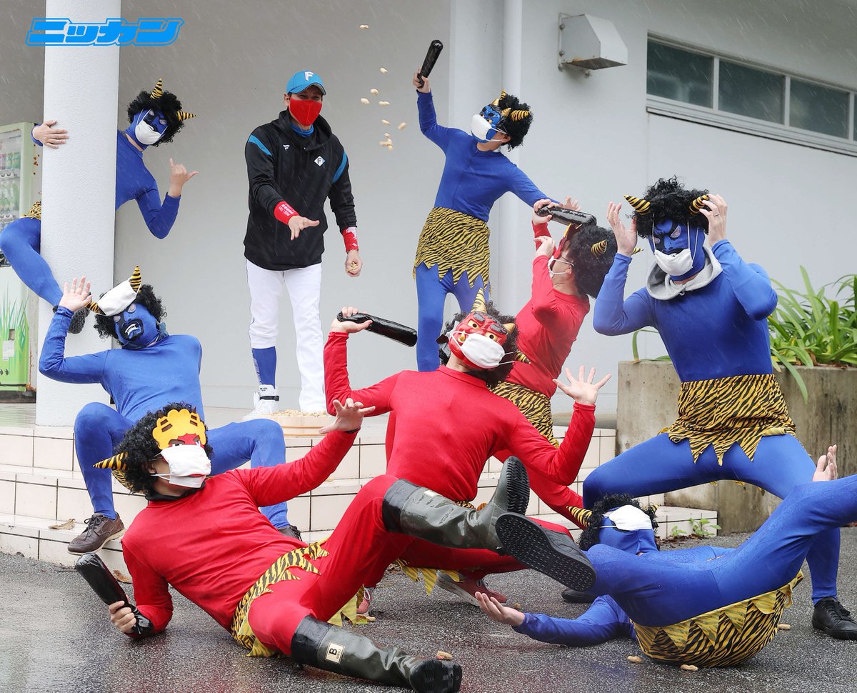 日本ハム・新庄剛志ビッグボスが豆まき、8体の鬼を成敗