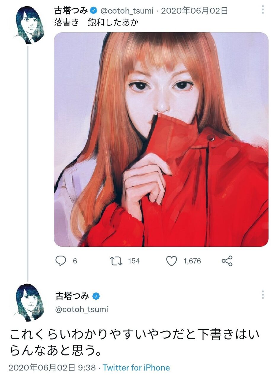 【炎上モード継続】イラストレーター・古塔つみ「トレパク」疑惑に釈明 写真トレースを完全否定 正体は40代半ばのおっさんか 【未成年少女に画像ださせる為のネカマ?】