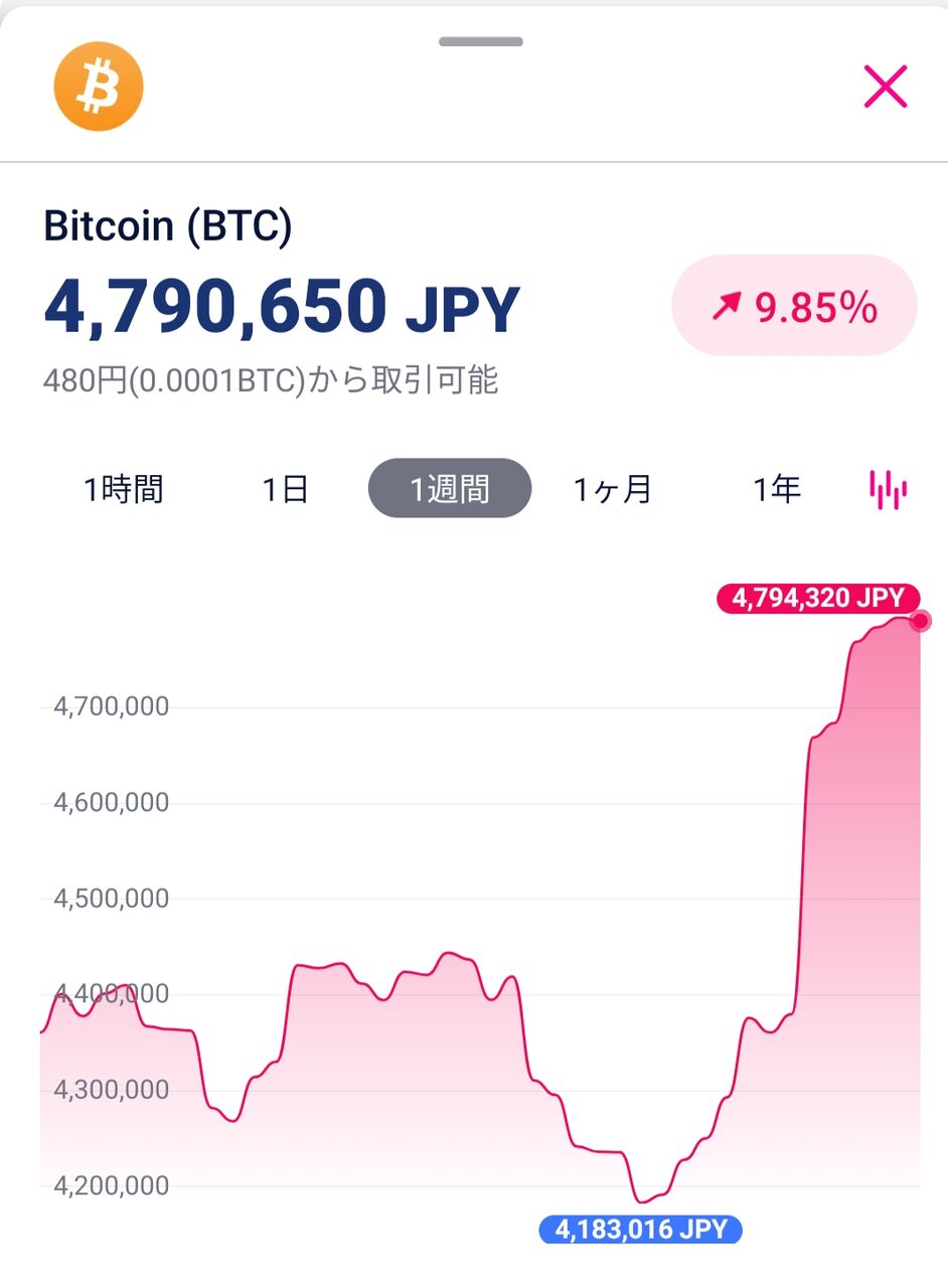 【朗報】ビットコインさん、一時480万突破。完全に爆上げモードへ!!!!!!
