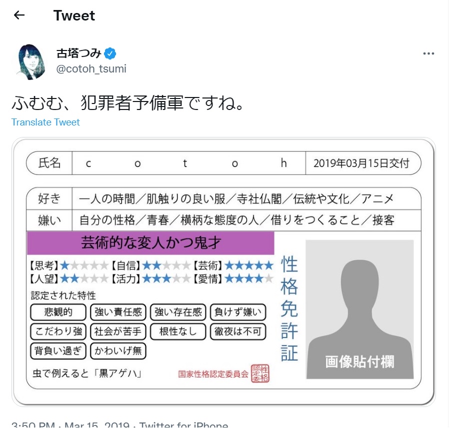 【悲報】YOASOBI絵師さん、「性格免許証」が発見されてしまう…
