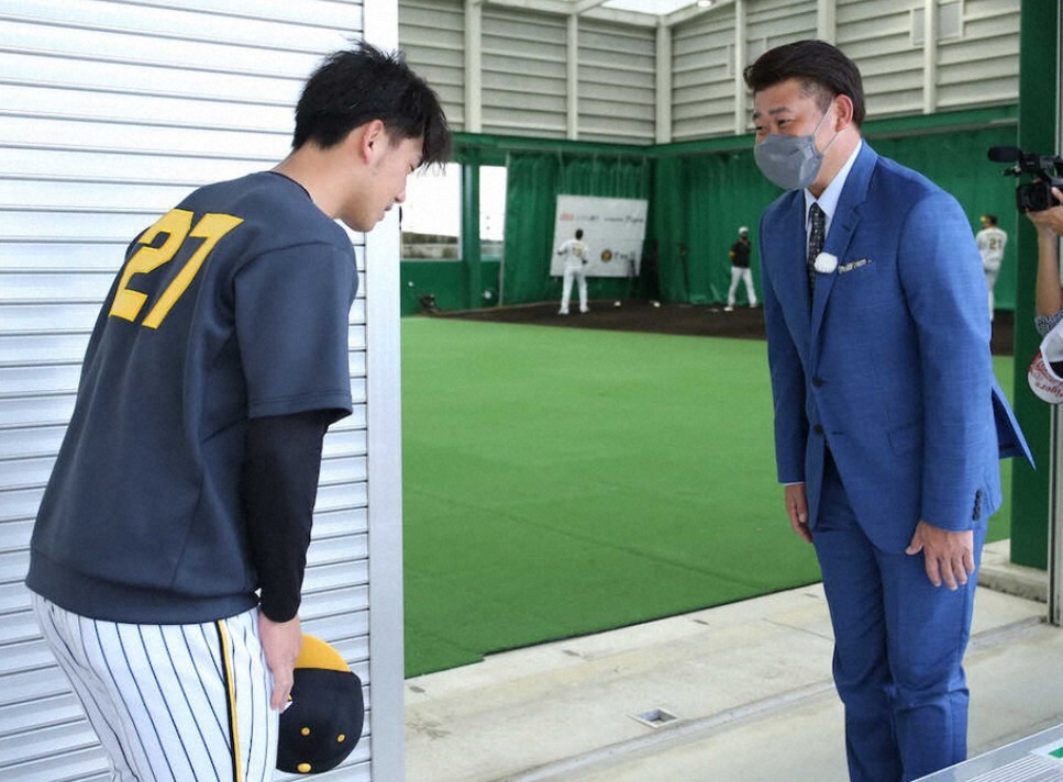 横浜高校出身の阪神・伊藤将司投手(25)と及川雅貴投手(20)が沖縄・宜野座キャンプを訪問した本紙評論家で同校OBの松坂大輔氏にあいさつした。ブルペンを視察しに来た同氏のもとに駆け寄り、言葉を交わした。2人にとっては横浜高の大先輩でレジェンド。きょう8日の日本ハム戦に先発する及川は以前も「偉大な先輩。目指してやっていきたい」と口にしていただけに、登板前の対面で大きな刺激をもらったはずだ。