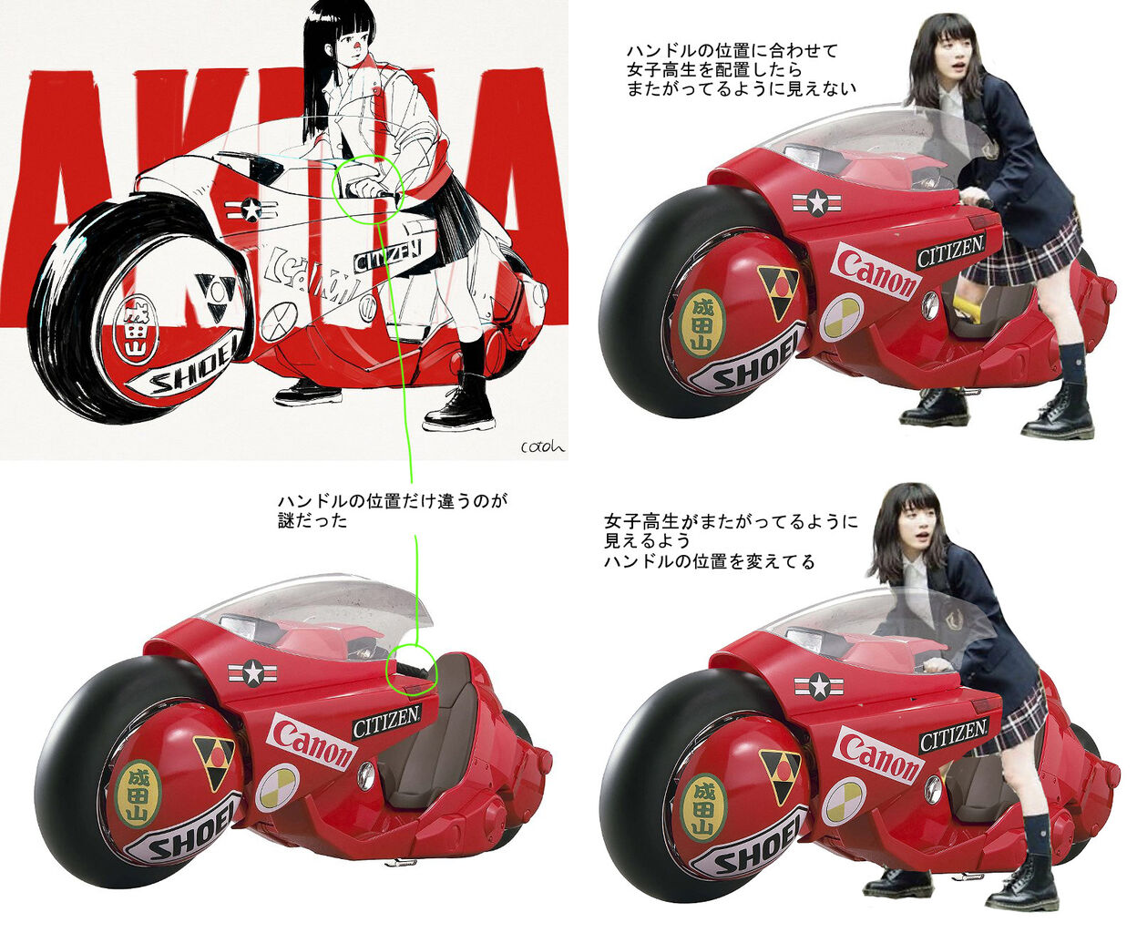 古塔さんは、ネット上で指摘されているように、金田のバイクや俳優の写真から引用などしてイラストを描いたのだろうか。