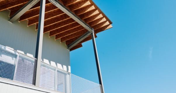 グラウンドへの広がりを作るため、ボールが跳ねるように屋根を跳ね上げました。