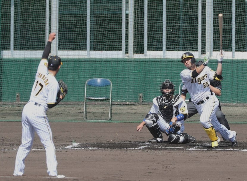 勝負の8年目シーズンに向かう阪神・江越が、実戦形式のシート打撃で2安打4打点。左翼争いに名乗りを上げた。
