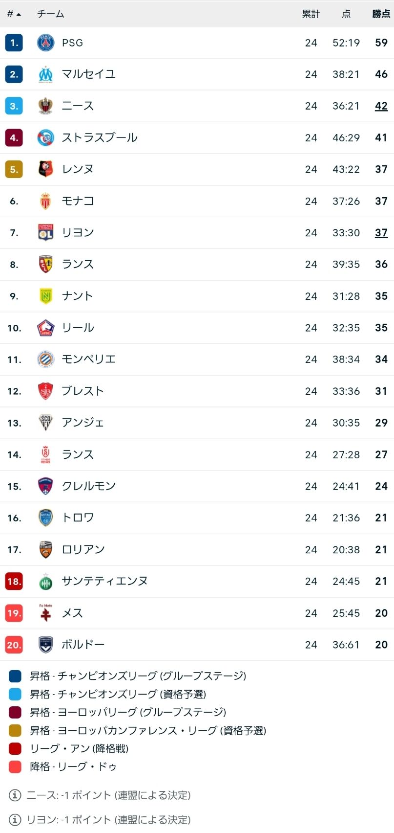 【朗報】世界最強と噂されるPSGのいるリーグアンの順位表wwwwwwwwww