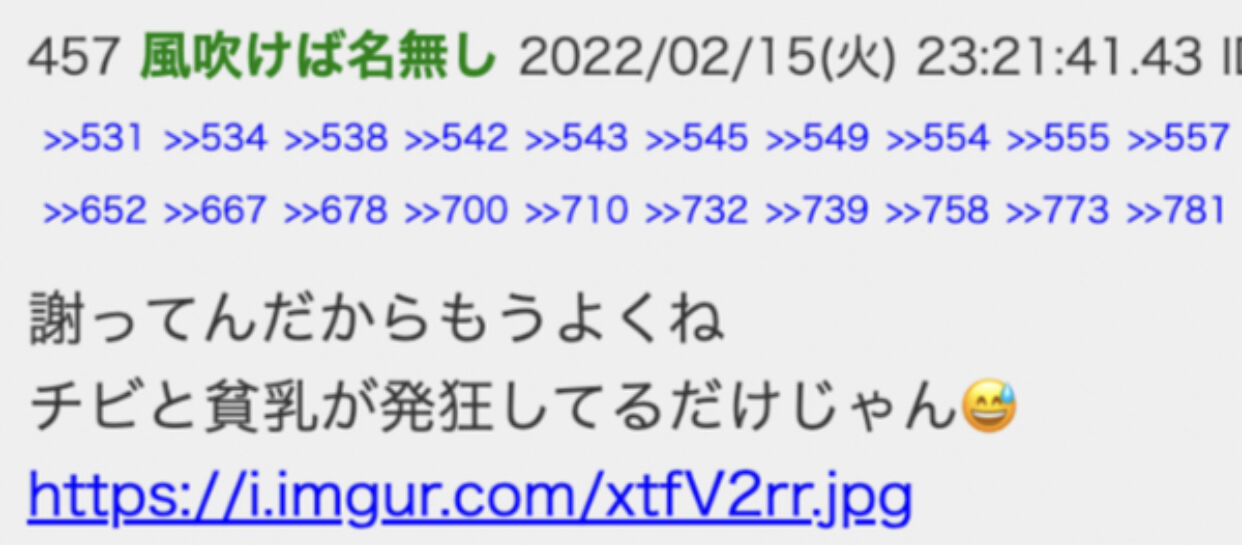 「謝ってんだからもう良くね?チビと*が発狂してるだけじゃん」という書き込み