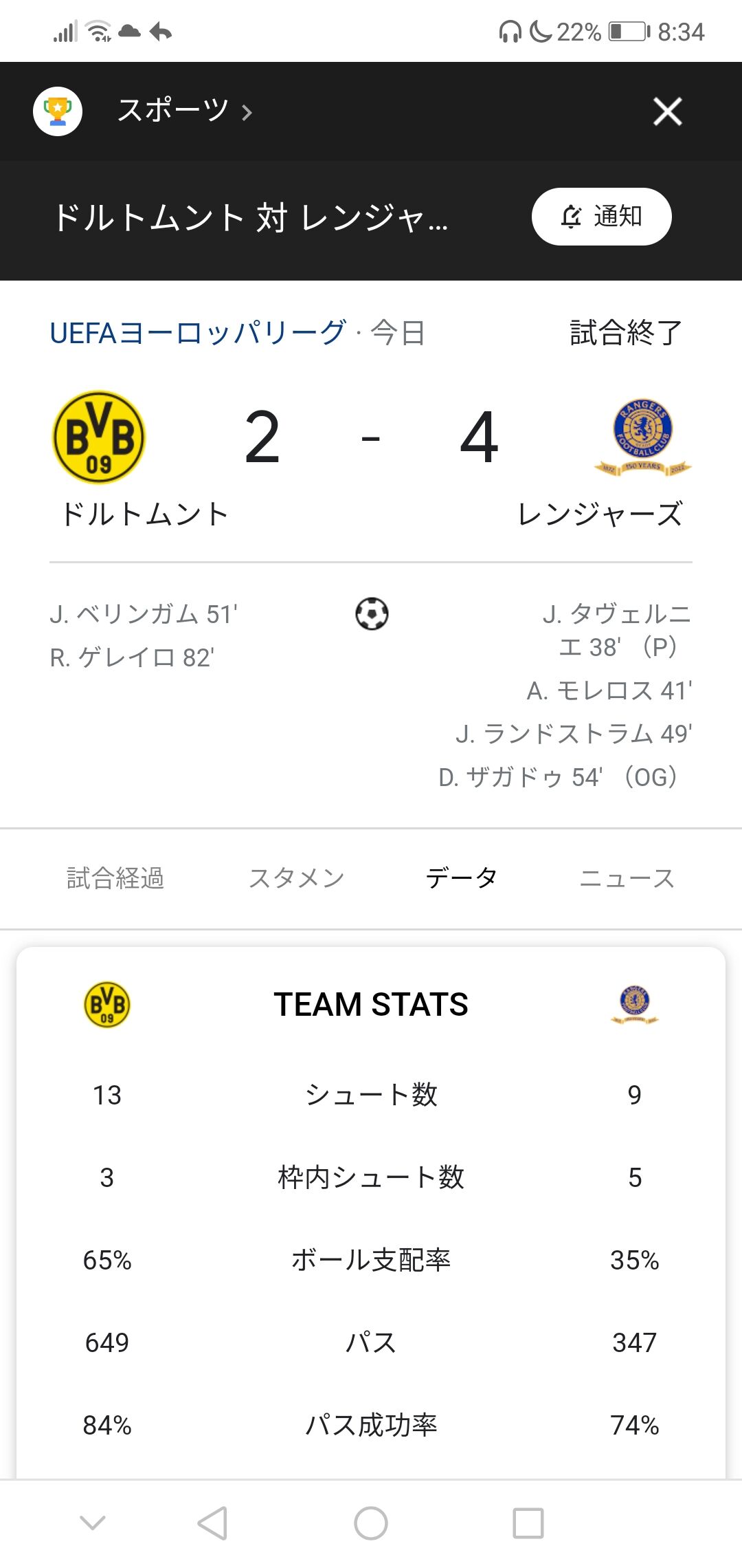 【悲報】ドルトムントさん…レンジャーズにフルボッコにされるwwwwwwww
