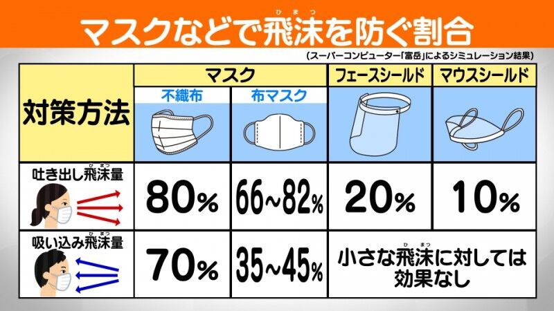 このとき、余儀なく1枚を複数回再使用させられた医療従事者は多い。しかし実験で、ウイルス通過率が新品では1%であったところアルコール消毒後は35%も通過するほど劣化したという。