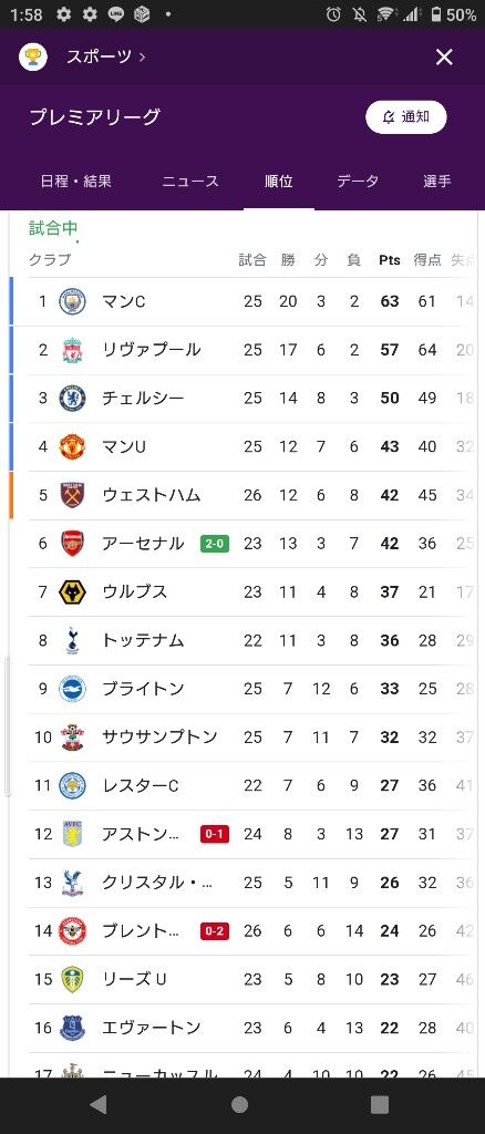 【悲報】プレミアリーグ最新順位表…試合数がバラバラ過ぎて意味不明wwwwwww