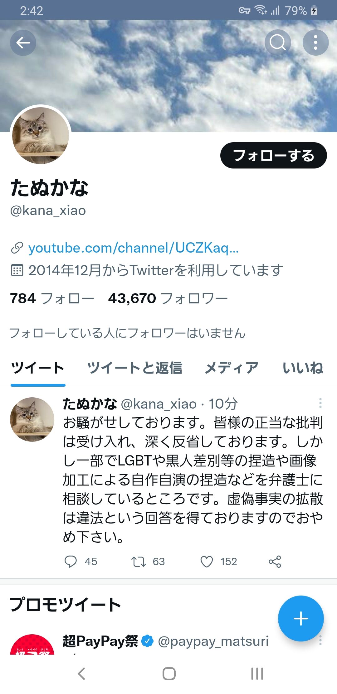 ■「一部でLGBTや黒人差別等の捏造や画像加工による自作自演の捏造」 たぬかなさんは2月15日に問題発言をした後、16日に謝罪。