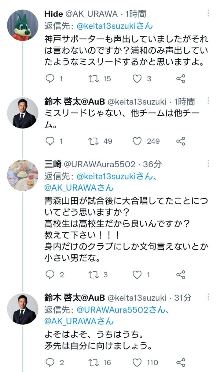 他チームもやってるじゃん!と噛み付く劣頭サポvs冷静なレスで返す鈴木啓太
