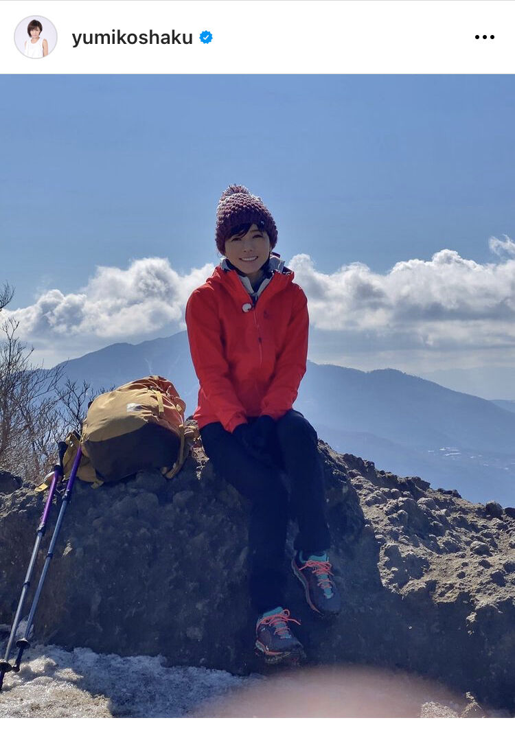 女優の釈由美子が23日にインスタグラムを更新し、山登りに行ったことを報告した。