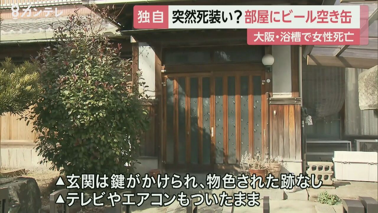 大阪府高槻市で女性が浴槽で死亡していた事件で、部屋の中にビールの空き缶が残されていたことが分かりました。