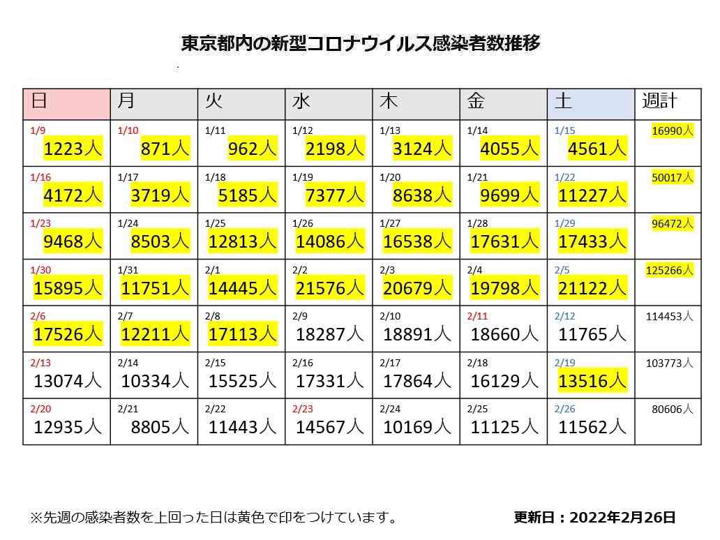 【速報】なかなか減らんなぁ~・・・本日(2/26)の気になる東京都の新規感染者数は⁉