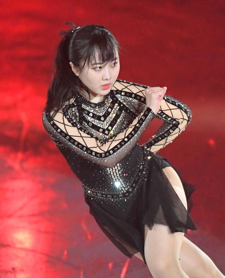 >姉とは対照的に、黒い衣装で躍動的な演技を披露