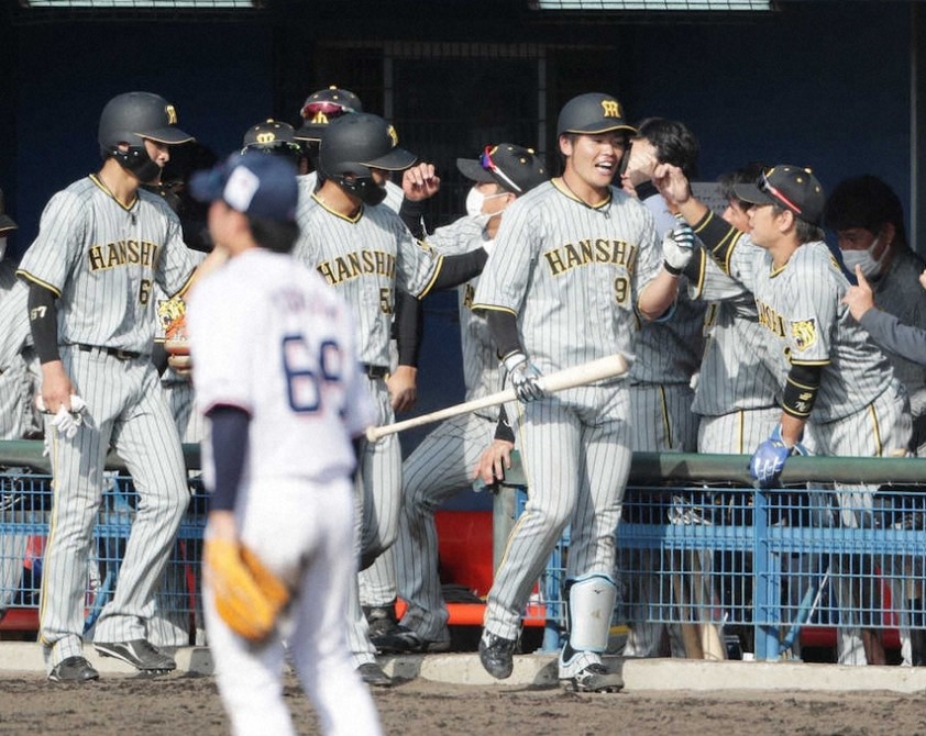 阪神は3回、江越の死球と盗塁で無死二塁から坂本の右前打で先制。2点をリードされた7回には江越の左翼への2ランで追いつくと、2死二塁から島田の中前適時打で勝ち越し。8回には佐藤輝の犠飛と代打・梅野の中越え二塁打で2点を加えた。9回2死一、二塁では途中出場の小野寺が星から左翼に3ラン。若手が開幕に向けてアピールした。