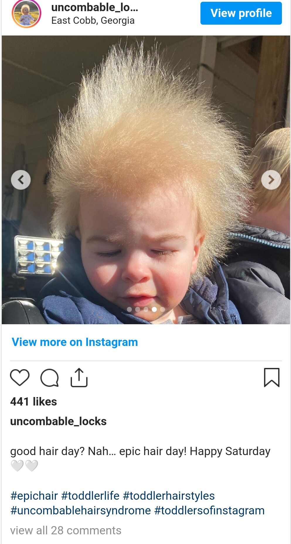 【画像】1歳の赤ちゃん「櫛でとかせない頭髪症候群」という世界でも珍しい病気にかかりスーパーサイヤ人みたいになる