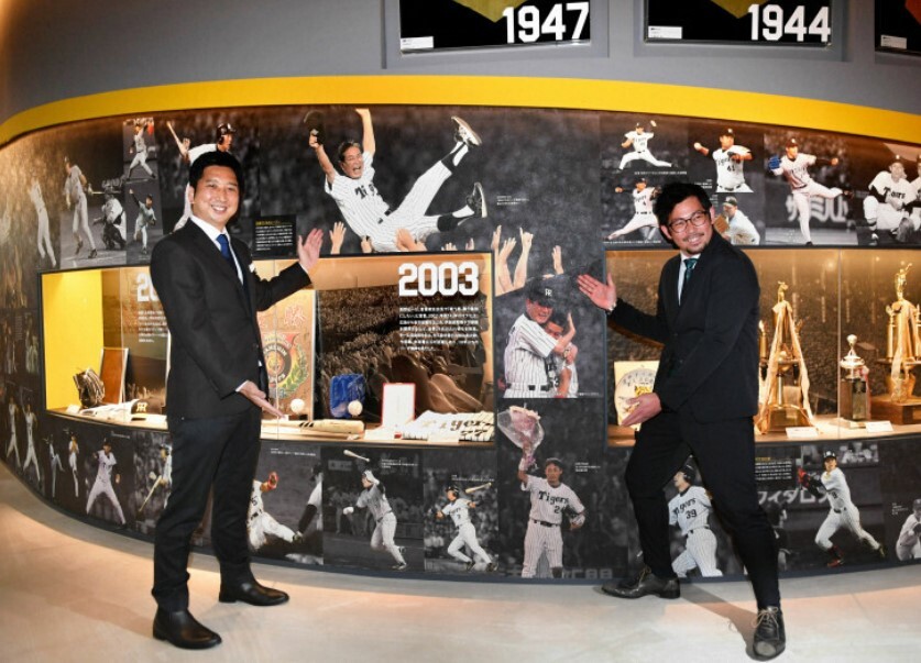 阪神電気鉄道は3日、阪神甲子園球場(兵庫県西宮市)内で資料を展示している甲子園歴史館をリニューアルオープンする。1日に報道向けの内覧会があり、元阪神投手の藤川球児さん(41)と岩田稔さん(38)も訪れて記念撮影などに応じた。