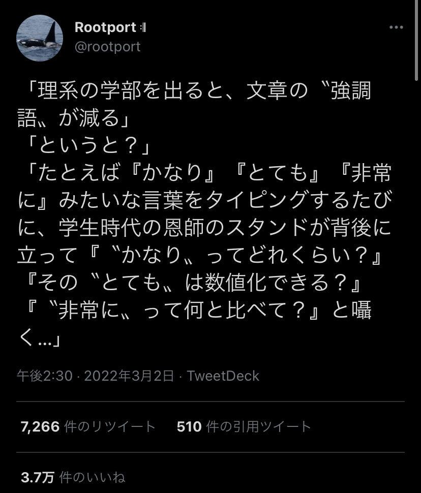 (出典 【画像】Twitter民「理系の学部を出ると、文章の”強調語”が減る」👉3.7万いいね)