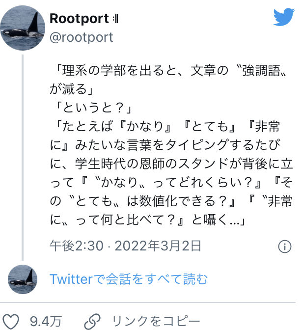 【画像】Twitter民「理系の学部を出ると、文章の”強調語”が減る」👉9.4万いいねWWWWWWWWWWWWWWW