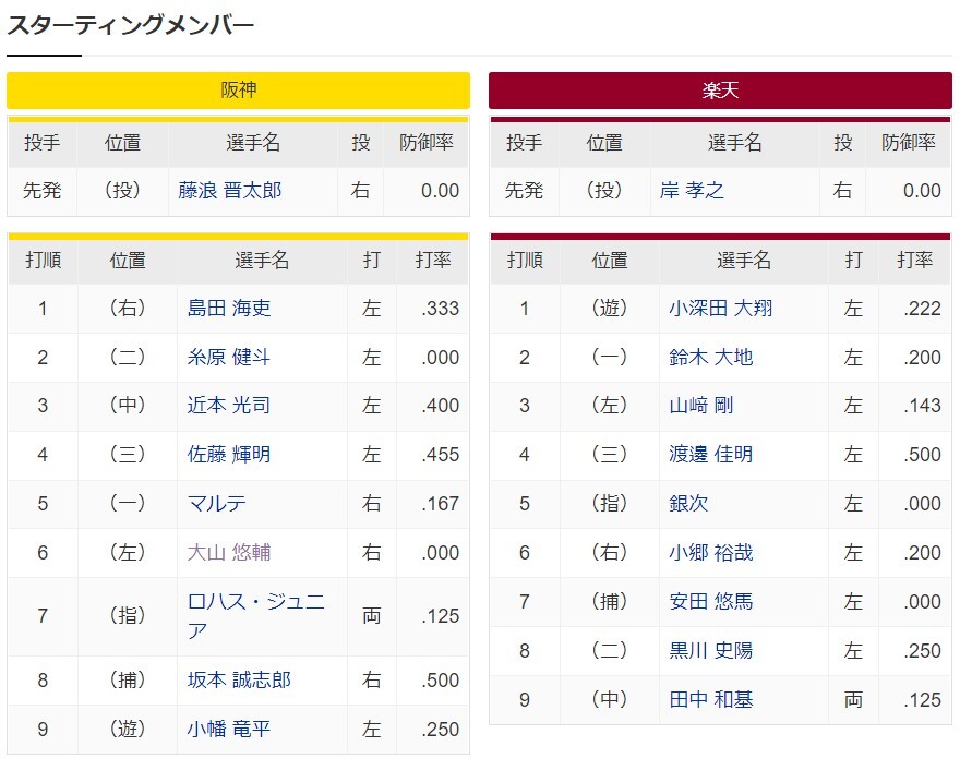 【オープン戦】阪神ー楽天 スタメン 甲子園球場 2022/3/5